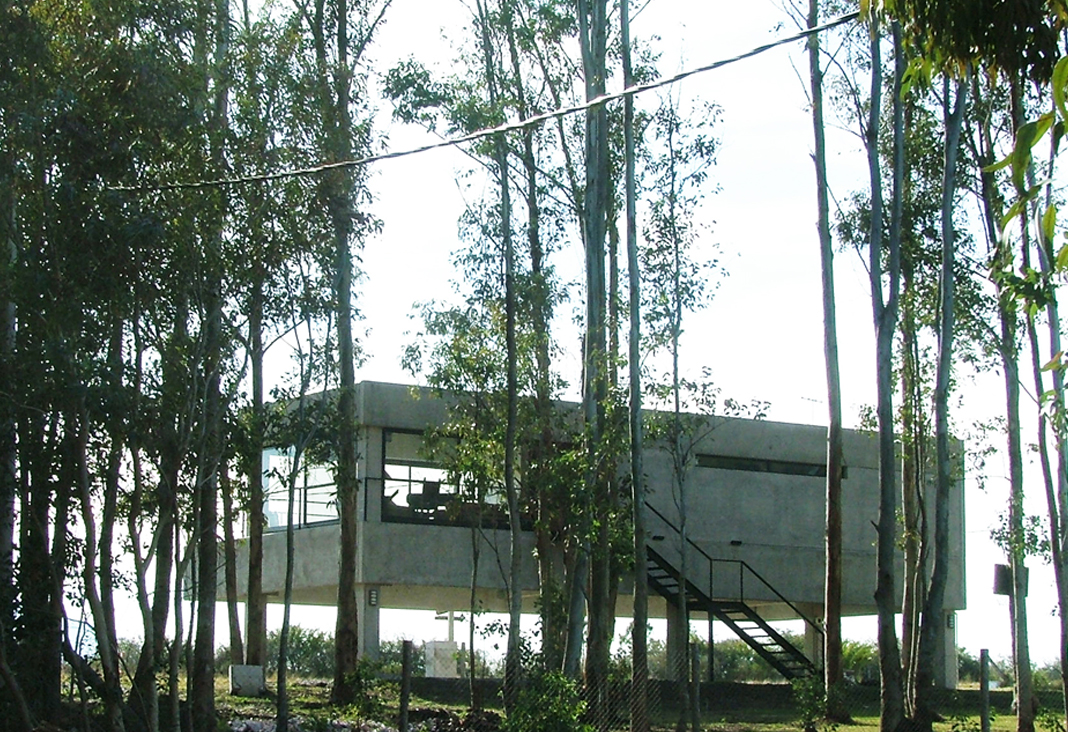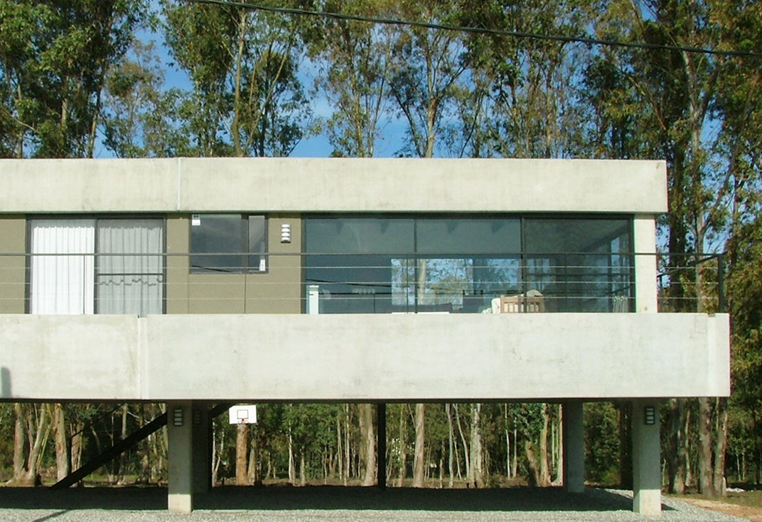 Ubicada en el balneario Bella Vista, la casa de temporada fue un encargo realizado a nuestra colega Ana Paula Noya, con quien nos asociamos para este proyecto. Rodeado a sus lados de densos bosques de pinos, el terreno en esquina enfrenta a una espectacular vista de las sierras. Se intentó conservar la mayor cantidad de especies autóctonas, fundamentalmente los viejos pinos que rodeaban el terreno, por lo cual la casa se implanta sobre el sector frontal.
