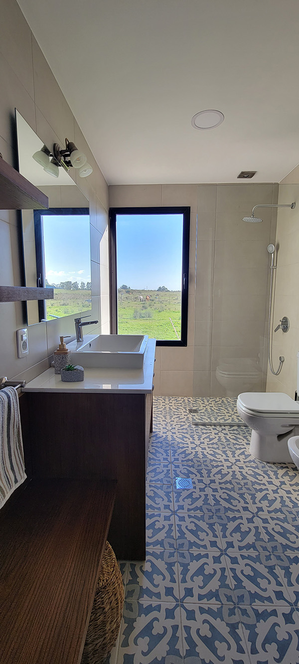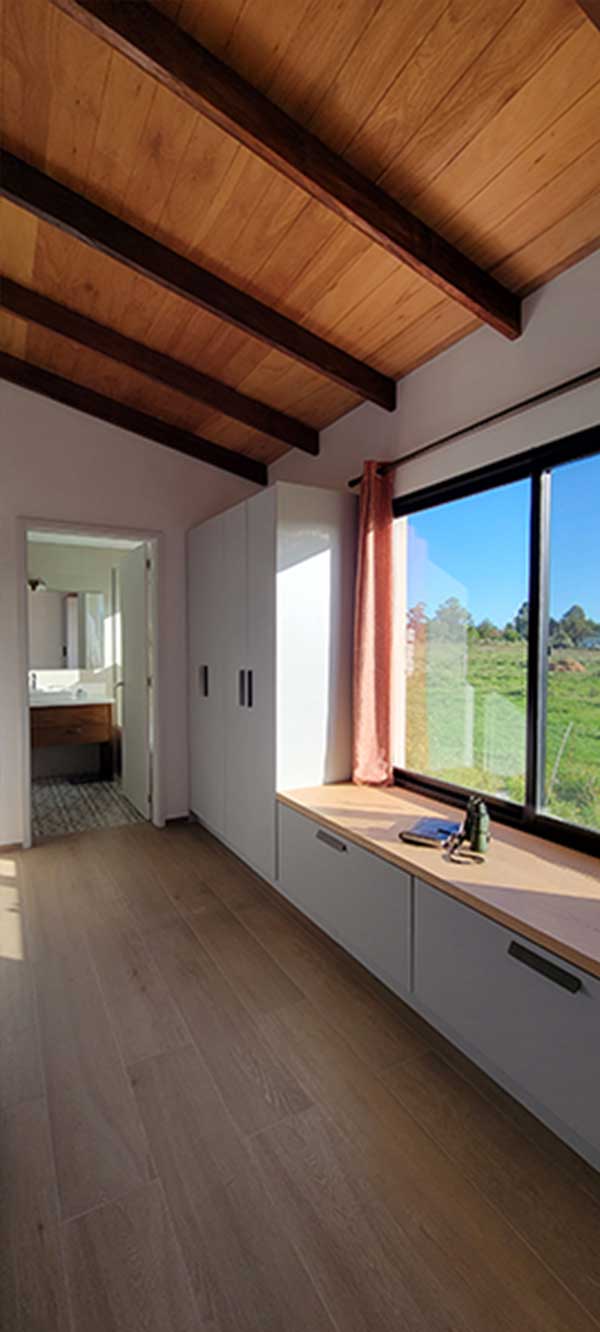 Luego de testear varias posibilidades optamos por ampliar la planta alta generando un espacio de vestidor vinculado a la suite y a las vistas del jardín, para lo cual debimos, además, rediseñar el baño.