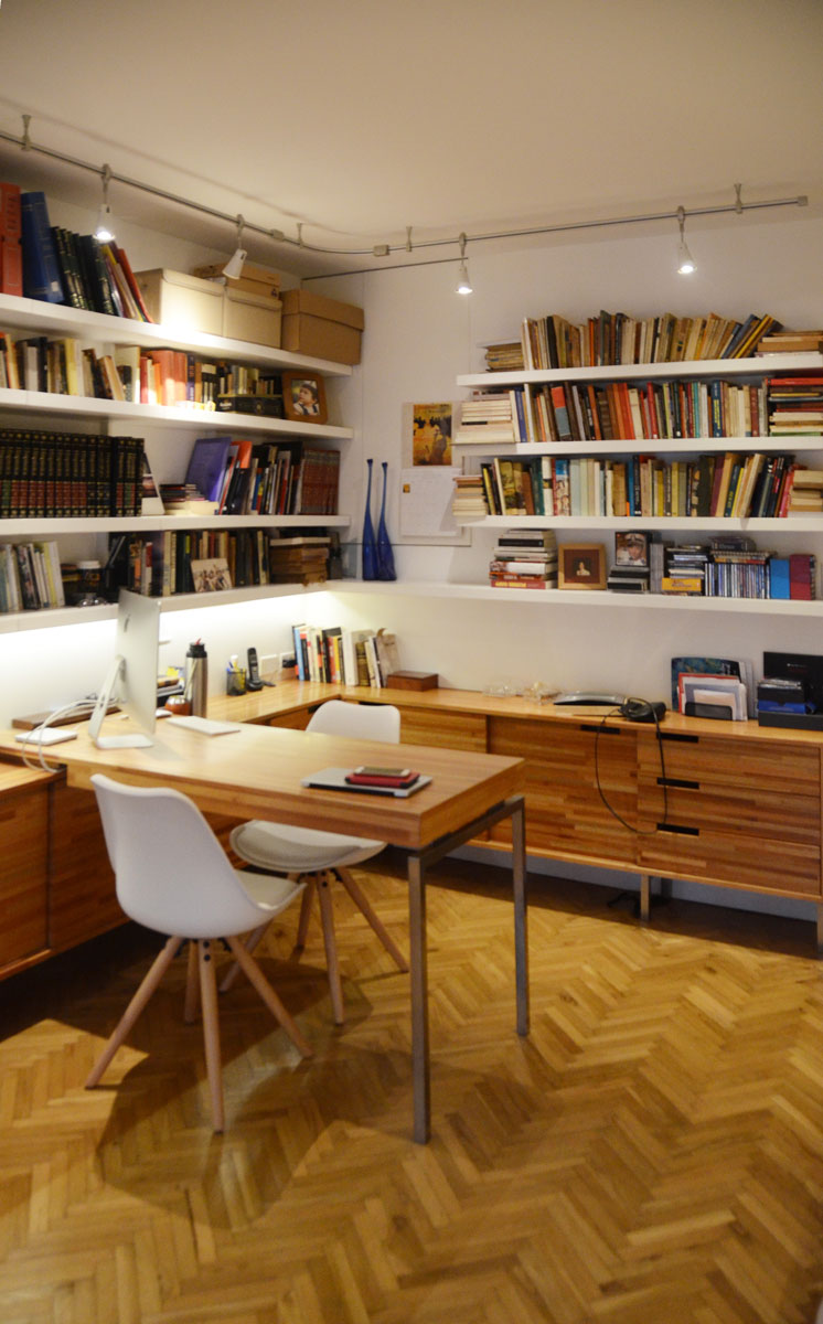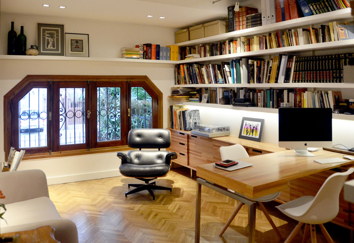 Los propietarios nos convocaron con la intención de realizar una serie de intervenciones en una tradicional casa de Pocitos que permitieran refuncionalizarla y adaptarla a los nuevos usos que la familia daba a los espacios. Las obras debían darse espaciadas en el tiempo ya que ellos continuarían viviendo allí durante las mismas. Mejorar el acondicionamiento térmico con la incorporación de un sistema integral de calefacción, renovar el toilette y la refuncionalización de las habitaciones de los más pequeños (que ya habían crecido) para hoy albergar nuevos usos, fueron nuestra primera etapa de trabajo. Que todos los ambientes de la casa fueran funcionales y cómodos fue una de las premisas que nos llevó a incorporar diseño de mobiliario a medida en la mayoría de los ambientes en los que seguimos interviniendo: una sala de lectura, una sala de estudio con una gran biblioteca y el estar de uso diario.