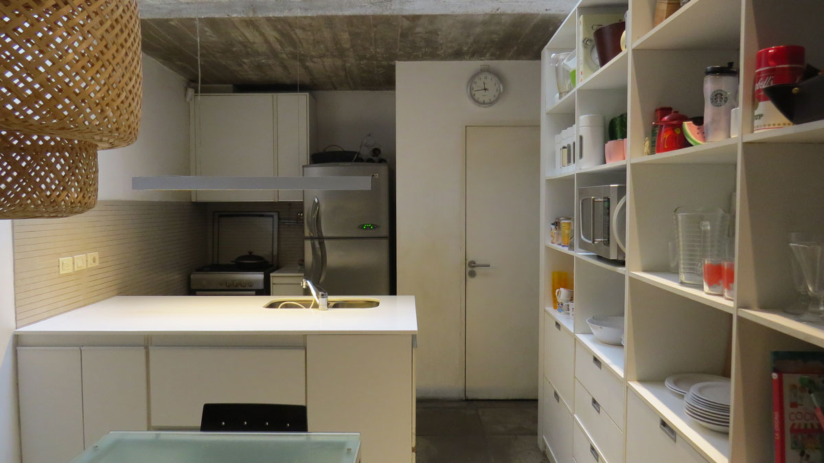 Nuestro proyecto buscó conectar espacios con el fin de ampliarlos, adaptándose a los nuevos modos de vida. Cocina y comedor conforman un único espacio donde se diseña el mobiliario para almacenamiento y vitrina de objetos singulares. El equipamiento, diseñado en clave moderna, genera un díalogo de opuestos con las terminaciones, molduras y carpintería originales de la casa, que fueron restauradas o reutilizadas como en caso de las baldosas calcáreas del garage que pasaron a ser el pavimento de otro sector. En planta alta se proyectó un patio, para dar ventilación a habitaciones que carecían de ella, albergar el sector lavadero y a la vez servir de nexo con la azotea transitable, el espacio exterior de la casa. Allí se completó el espacio con un parrillero y una mesada para poder albergar reuniones con amigos o simplemente disfrutar del espacio abierto.